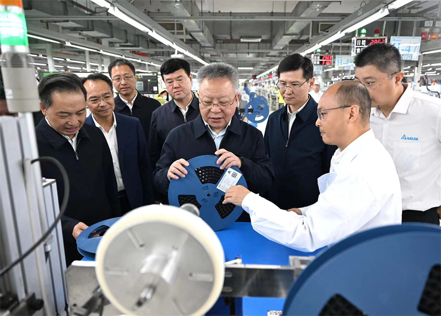 11月10日,沈晓明在台达电子(郴州)有限公司了解企业发展、科技创新、市场开拓等情况。
