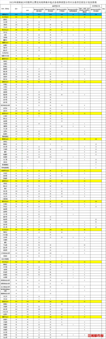 本科层次高中教师公费定向培养计划招生1813人,本科层次初中教师公费定向培养计划招生3035人,本科层次小学教师公费定向培养计划招生809人,本科层次特殊教育教师公费定向培养计划招生38人……2023年,湖南高中(中职)起点本科层次各类乡村教师公费定向培养招生计划为5950人。其中,湖南40个脱贫县(原集中连片特困县、国家扶贫开发工作重点县)的相应招生计划(共2342人)同时列入教育部中西部欠发达地区优秀教师定向培养专项计划地方优师专项(以下简称省级优师专项)。