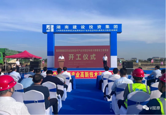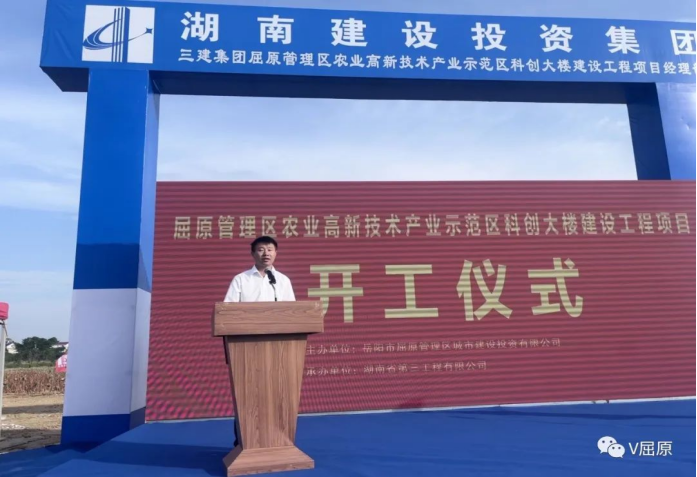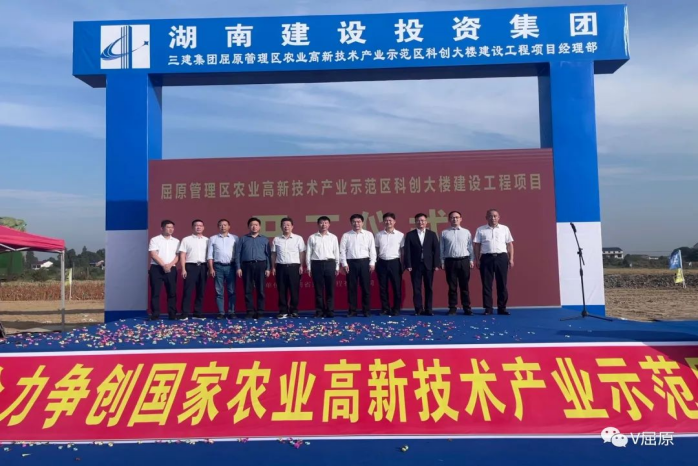 11月3日,岳阳市国家农业高新技术产业示范区科创大楼开工仪式在屈原管理区隆重举行。岳阳市人民政府副市长张世愚出席并宣布开工,屈原管理区党委书记向科军出席并致辞。开工仪式由屈原管理区党委副书记、管委会主任杨林彬主持。区领导曹正平、胡志刚、徐扩勇出席,市、区相关单位负责人和项目及施工单位代表参加。
